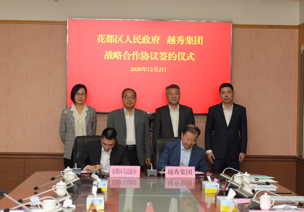2020年12月2日下午,越秀集团与广州市花都区人民政府在花都区委区政府大楼举行战略合作签约仪式。按照战略合作协议约定,双方将在城市更新、综合开发、基础设施、金融服务、农业食品、乡村振兴等多领域开展全方位、深层次合作。越秀集团旗下越秀地产与花都区属国企宝信地产同步签署合作协议。