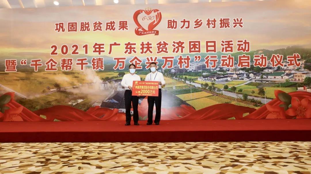 万企兴万村”行动启动仪式,省市有关领导出席了活动。越秀集团党委书记、董事长张招兴参加了上述活动,并代表集团现场认捐2000万元(含广州市1000万元)。集团在扶贫济困和脱贫攻坚领域的成绩也得到社会各界高度肯定,荣获2020年度广东扶贫济困红棉杯银杯。