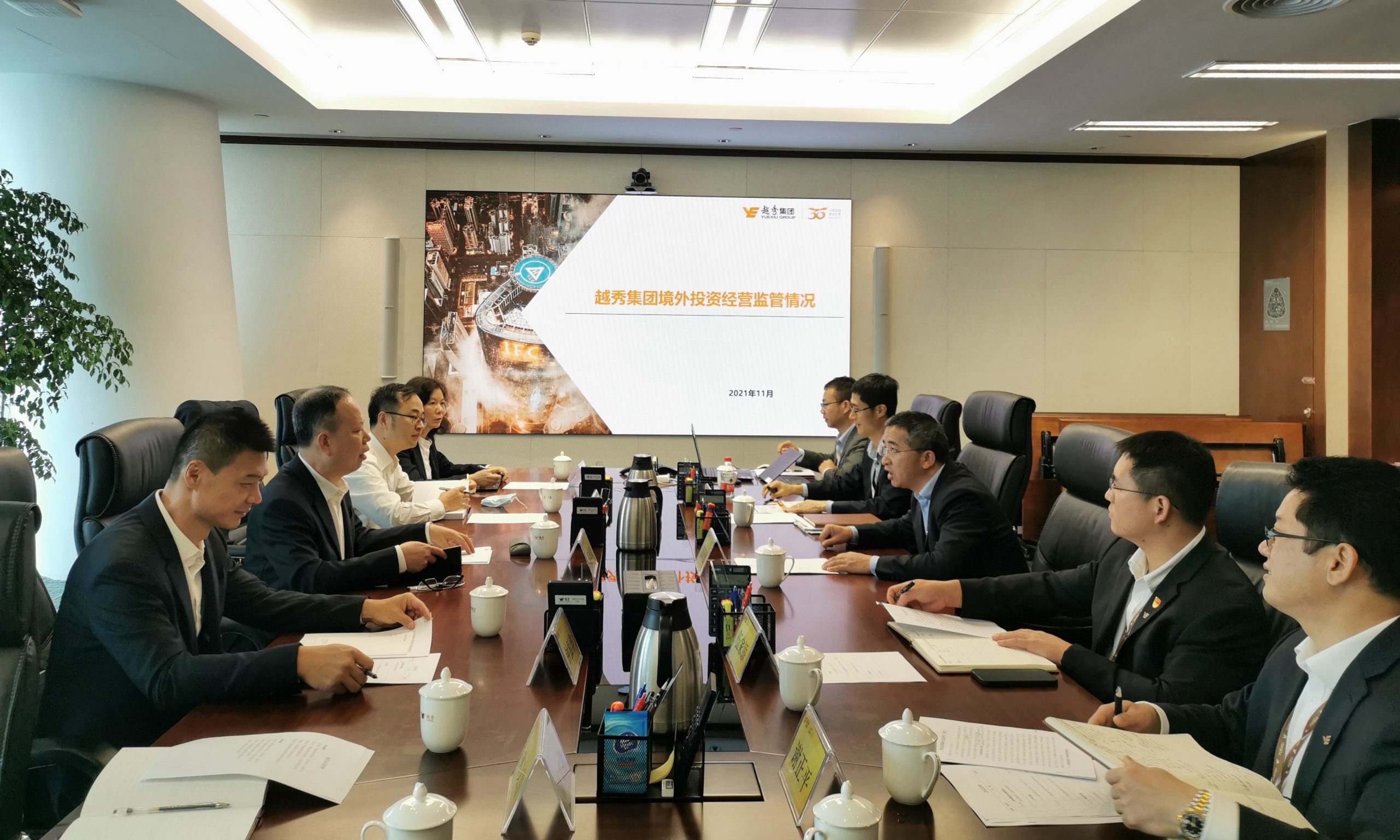 11月3日下午,粤海集团党委委员、纪委书记、监察专员郑成桑带队到集团座谈交流,越秀集团党委委员、纪委书记、监察专员潘泽勇与集团综合室及纪检监察室有关同志接待了郑成桑一行。