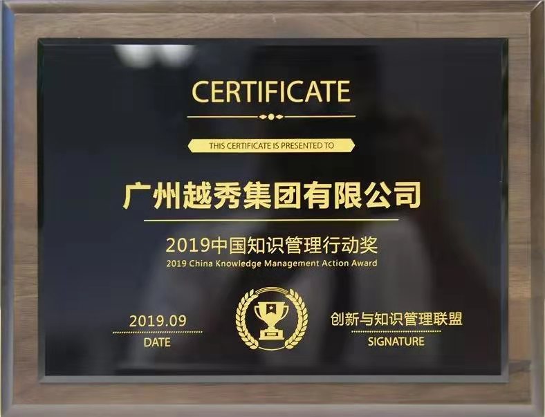 On September 5, the award ceremony of 2019 China Knowledge Management Action Award was held in Chengdu. Yuexiu Group stood out from more than 20 knowledge management enterprises from around the country due to its excellent performance in knowledge accretion, knowledge sharing and creation of value and won 2019 China Knowledge Management Action Award with its total scores ranking the fourth in the competition.